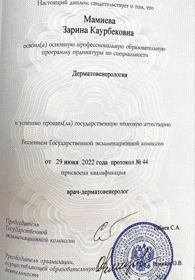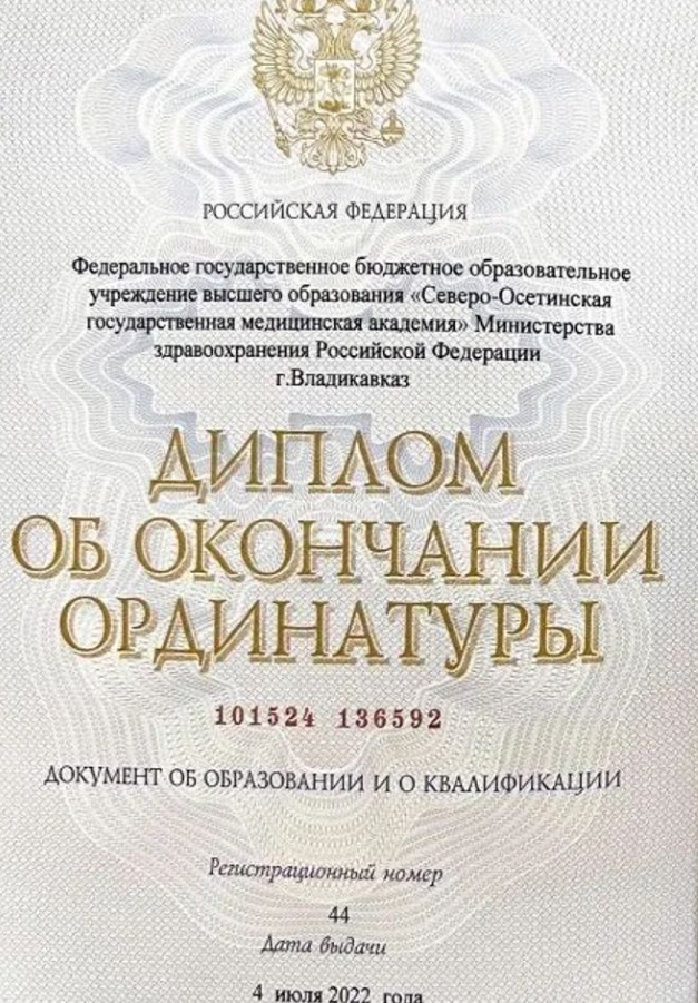 Северо-Осетинская государственная медицинская академия, дерматовенеролог 2019–2022 гг.