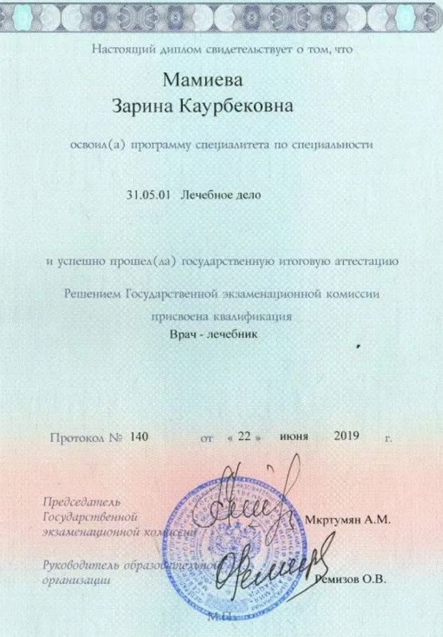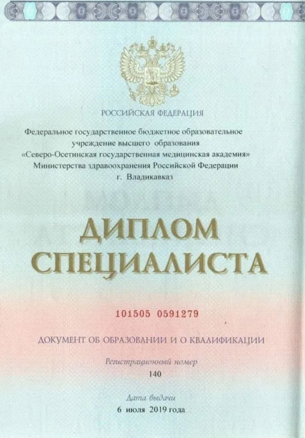 Северо-Осетинская государственная медицинская академия, врач-лечебник 2013–2019 гг.