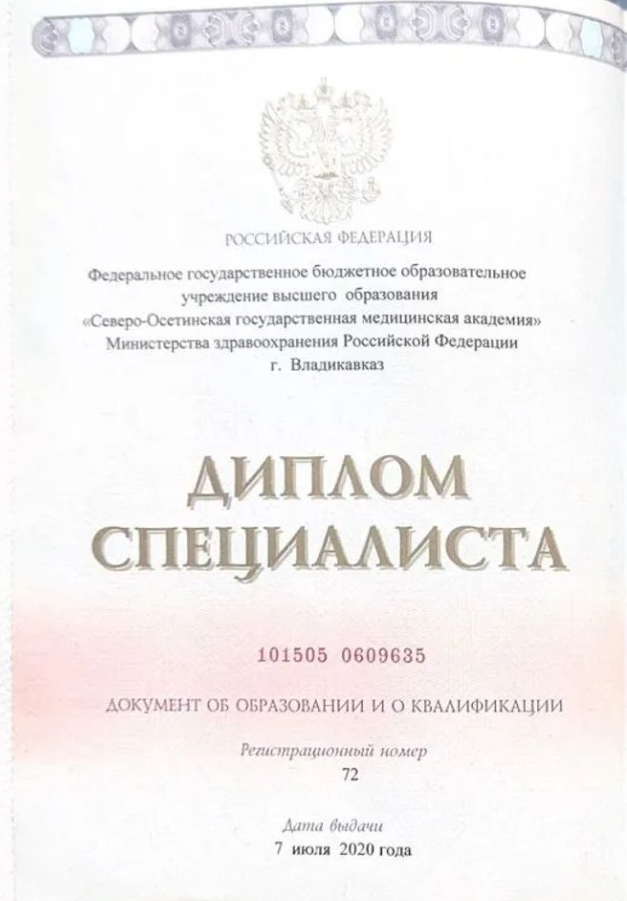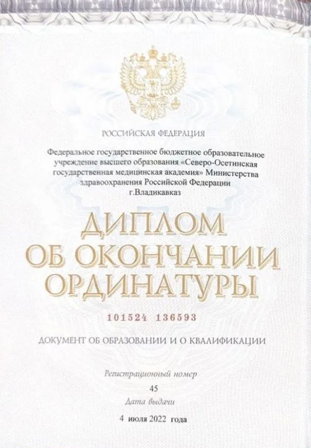 Северо-Осетинская государственная медицинская академия, дерматовенерология, ординатура 2020–2022 гг.